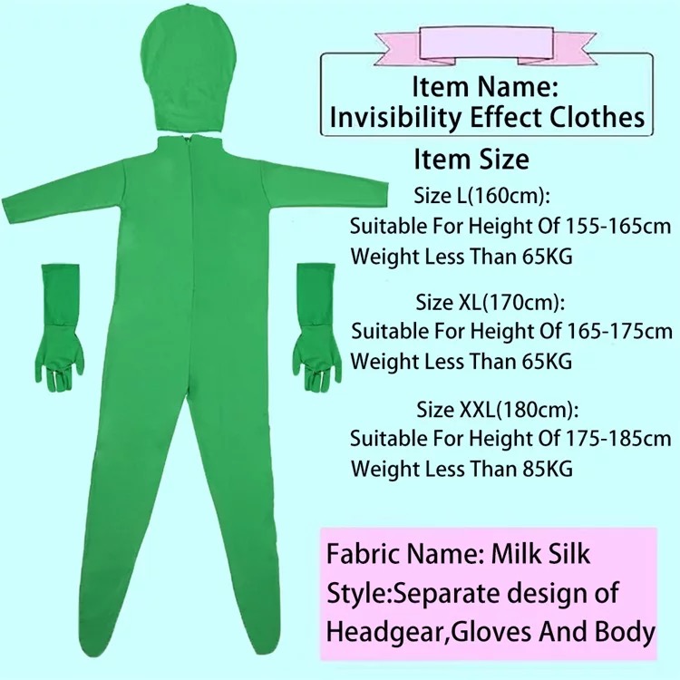 Chromakey Body Suit Full Body Green Screen Suit for Photo Video Invisible Effect