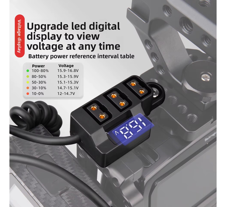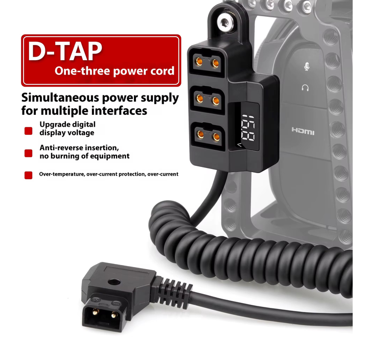 D-TAP to V-Mount One-to-Three Battery Camera Power Supply Conversion Cable with Digital Display PVC Jacket Anton B-Type