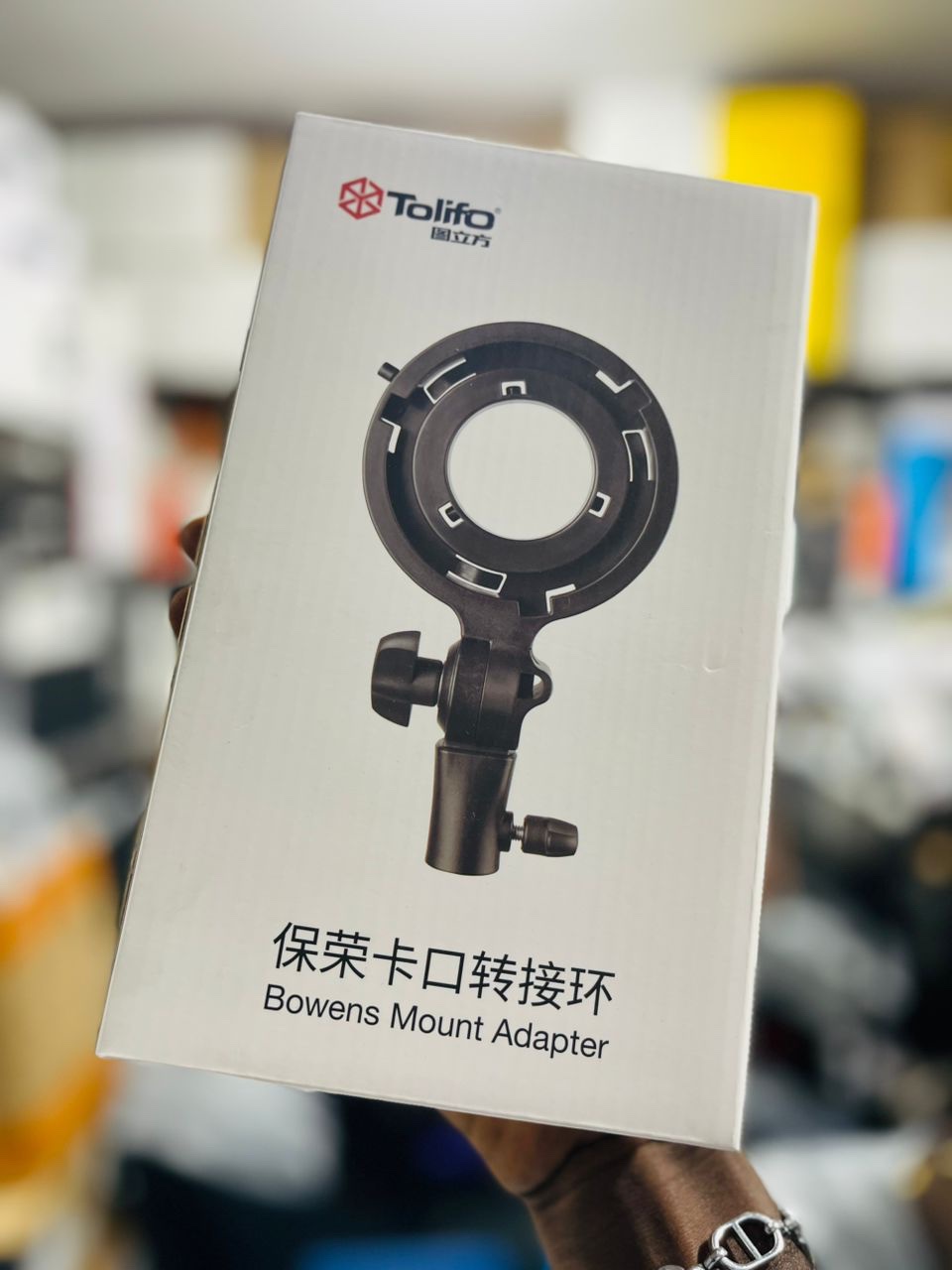 A compatible adapter to connect PL Series Light to a standard bowen mount accessory, like a softbox or a reflector.