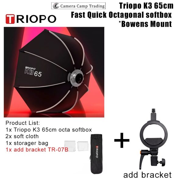 Triopo K3 rapid folding softbox + Grid + Speedlight bracket and Bowens mount brackets